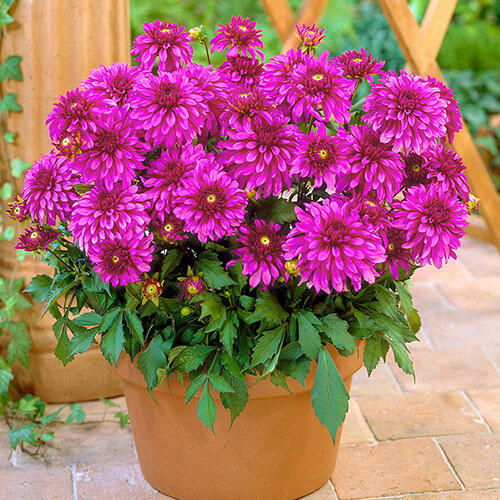 Experience a vivacious display of colour! Warm pink, 4¾" double blooms boast vivid red-purple hues on the reverse of each petal, resulting in a glorious two-tone effect. Flowers for months in a sunny bed or border.