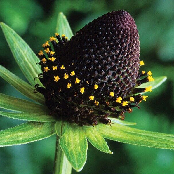 Surrounding the large and impressive central almost black, dome-shaped boss are not the petals of your average, self-respecting flower, but rather ten or so, large, well spaced, stiffish, very petal-like things: strictly involucral bracts (or, if you want to be up-to-date with the correct name, phyllaries) – calling them green flowers seems simplest! They are, of course, splendid for cutting for use fresh, when they last well in water, or dried.