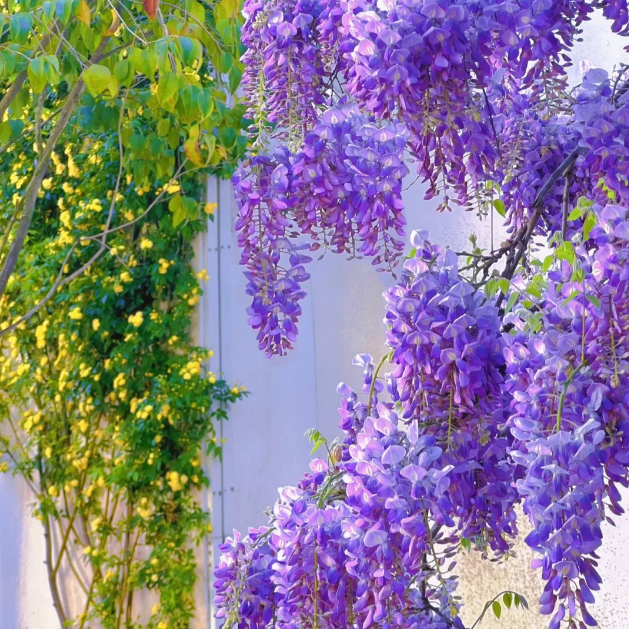🌸Growth Habit: Wisteria is a fast-growing vine that can climb and cover larger structures such as pavilions, fences, walls, etc. It has strong stems and branches that can wrap around supports.